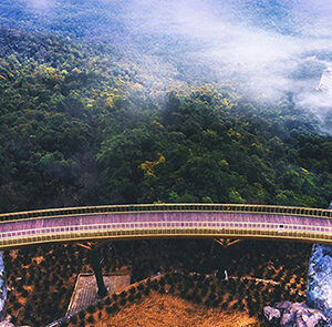 En visitant Ba Na Hill, ne manquez pas le Pont d’or ! Ouvert en juin et situé au milieu de la forêt, cet ouvrage captive les touristes avec son aspect saisissant, la structure du pont étant tenue par deux mains géantes (dites “mains des dieux”). Perché à 1.400 m d’altitude et d’une longueur de 150 m, ce pont est considéré comme une œuvre architecturale spectaculaire où les touristes peuvent admirer un panorama pittoresque de la région.