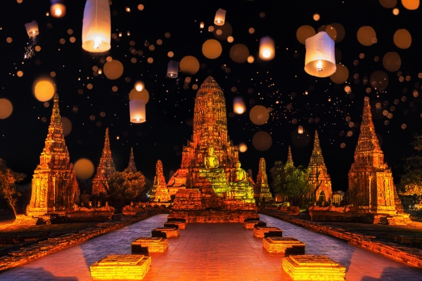 Loy Krathong au Parc historique d’Ayutthaya.