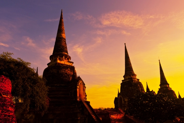 Visiter Ayutthaya au coucher du soleil.