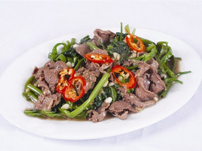 Ingrédients : (Pour 4 personnes) – 300 g de viande de bœuf – Deux bottes de liseron d’eau – Quelques gousses d’ail,…