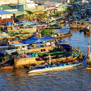 Le Delta du Mekong représente une superficie de plus de 40.548 km2, considéré comme le plus grand grenier de riz du Vietnam. Elle possède également un réseau de fleuve très important favorisant les activités du tourisme écologique. Venant au Delta du Mekong, vous découvrez de nombreuses activités comme : visiter des jardins fruitiers, faire une petite balade en Sampan en écoutant le chant folklorique local, vivre l’expérience unique du marché flottant très typique de cette région.