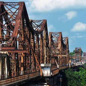 Le pont Long Bien, initialement nommé Pont Doumer, est un des ponts enjambant le fleuve Rouge à Hanoi. Construit entre 1898 et 1902 par les architectes français Daydé & Pillé, il fut autrefois le plus long pont d’Asie du Sud-Est. Son design en porte-à-faux avec 19 travées était novateur pour l’époque. Bombardé durant la guerre du Vietnam, il conserve des cicatrices visibles – poutres tordues et sections réparées – tout en restant un lien essentiel. Aujourd’hui, ce vestige vivant offre des vues panoramiques sur Hanoi et rappelle le passé tumultueux de la ville.