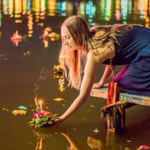 Loy Krathong, également appelée le “Festival des lumières” et “festival des lanternes flottantes”, est une célébration profondément ancrée dans la culture thaïlandaise. Ce jour-là, les Thaïlandais se rendent en famille ou en amoureux près des rivières, des lacs et des plans d’eau pour rendre hommage au Seigneur Bouddha et demander pardon à la déesse de l’eau.