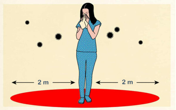 Maintenir une distance d’au moins 1 mètre avec les autres personnes, en particulier si elles toussent, éternuent ou ont de la fièvre. Lorsqu’une personne infectée par un virus respiratoire, comme la COVID-19, tousse ou éternue, elle projette de petites gouttelettes contenant le virus. Si vous êtes trop près, vous pouvez inhaler le virus. En maintenant une telle distance, vous éviterez d’inhaler les gouttelettes émises par une personne qui éternue ou tousse à proximité.