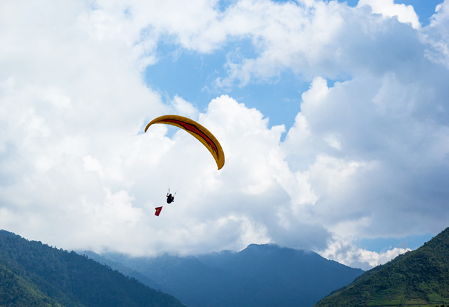 Mu Cang Chai au milieu du Nord-Ouest est considérée comme une jeune femme flottant dans les couleurs vertes et jaunes des champs en terrasses. Avec une hauteur de plus de 1 000 m, Mu Cang Chai a attiré de nombreux joueurs de parapente.