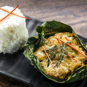 L’Amok est souvent consideré comme le plat national cambodgien. Il s’agit d’un poisson cuit a la vapeur dans une feuille de bananier avec une sauce à base de lait de coco et de “kroeung” (un melange d’épices cambodgiennes comme la citronnelle, le galanga et le curcuma). Ce plat est doux et parfumé, parfait pour decouvrir les saveurs locales.