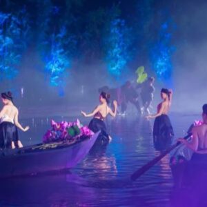 The Quintessence of Tonkin en plein air est l’un des plus impressionnants du Vietnam. Il met en scène plus de 200 artistes et combine danse, musique traditionnelle et théâtre aquatique sur une scène immergée. Vous y découvrirez des scènes de la vie paysanne, des légendes locales et des performances de marionnettes sur l’eau. La mise en scène est spectaculaire avec des jeux de lumière, des costumes traditionnels somptueux et une immersion sensorielle totale. C’est un véritable voyage à travers l’histoire et la culture du Vietnam du Nord.