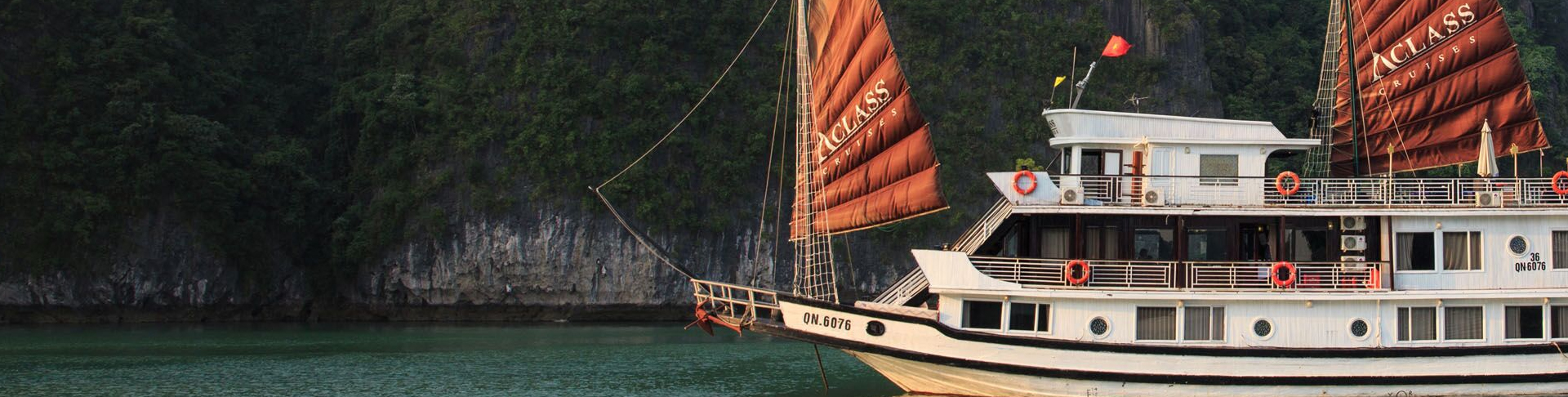 Explorez la beauté magique de la baie d’Ha Long avec la jonque Aclass Legend. La dernière dispose de 14 chambres luxueuses, les espaces publics sont conçus par des meubles en bois gracieux et de beaux équipements. Les cabines sont entièrement équipées avec de larges fenêtres pour une vue panoramique de la baie qui vous apportent une atmosphère tranquille.