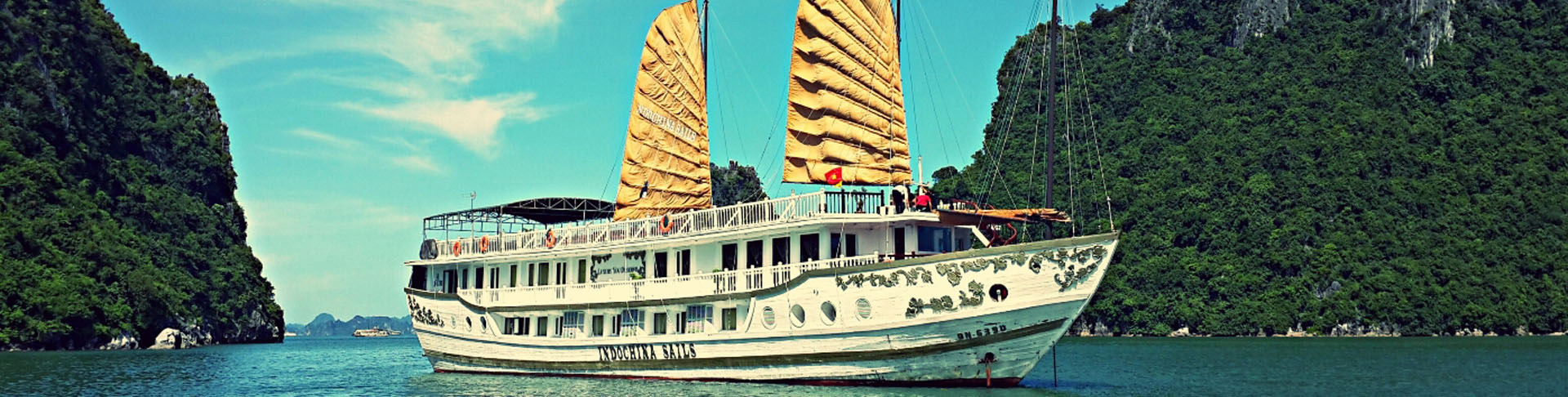 Croisière navigue, en passant par les zones les plus belles et les plus calmes dans la baie d’Halong, notamment le brûleur d’encens, l’îlot en pierre de chien, le coq de combat et l’îlot de doigt.