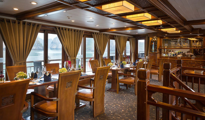 07h00: Prenez un petit déjeuner léger avec café, pâtisseries et contemplez l’aube dans la baie d’Halong