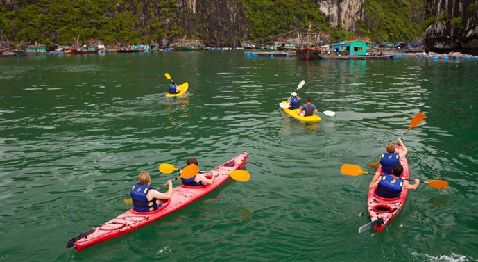 13h00: Lorsque vous déposez toutes vos affaires dans votre cabine, notre bateau commence à glisser vers le centre du site du patrimoine mondial. Votre déjeuner, au restaurant du bateau, sera servi avec des fruits de mer frais locaux, mais un menu de légumes est toujours disponible à votre demande. De la zone de la marina, notre bateau de croisière passe par Dog Head et les îles Swan, Ba Hang, des villages flottants (avec des maisons flottantes), un brûleur d’encens, puis des îles Thumb avant de rejoindre la grotte de Luon pour faire du kayak.
