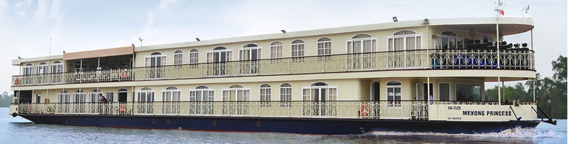 Mekong Princess est un navire fluvial de luxe récemment construit sur la route reliant le Vietnam au Cambodge. Le navire est élégamment conçu et décoré de manière exquise, rappelant l’ère coloniale française. De la nourriture à la décoration, tout est préparé en tenant compte de chaque détail. Le navire est grand mais il n’ya que 12 cabines spacieuses, chacune avec une baie vitrée et dotée d’équipements modernes qui promettent une expérience ultra confortable. À bord, vous pourrez également profiter du salon Ramvong, du spa Princess, de la bibliothèque, du centre de remise en forme et de la boutique.