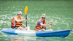 Faire du kayak autour de la plage privée dans la zone de Trinh Nu.