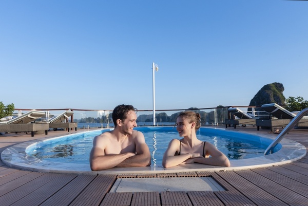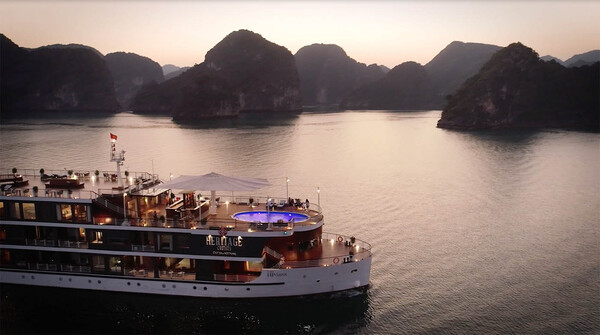 17h30 : Retour à Heritage Cruises, profitez de la vie à bord du navire ou dans votre suite, et avec un cocktail à la main, admirez le coucher de soleil sur le Golfe du Tonkin.