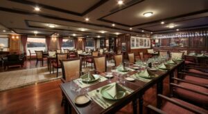 12h30 : Montez à bord du bateau Heritage Cruises et profitez d’un verre de bienvenue pendant que vous recevez un briefing sur la croisière, des instructions de sécurité et l’enregistrement dans votre suite. Le déjeuner est servi au restaurant L’indochine.