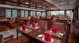 La Regina Legend Cruise propose 27 cabines spacieuses et des routes exotiques allant d’Hai Phong à la baie d’Halong, à la baie de Lan Ha et à l’île de Cat Ba. Non seulement vous apprécierez l’atmosphère somptueuse de la décoration intérieure exquise et les repas somptueux à bord du navire, mais vous pourrez également participer à des activités inoubliables telles que des visites touristiques, des cours de cuisine, du kayak, de la natation et du vélo autour du village de pêcheurs de Viet Hai.