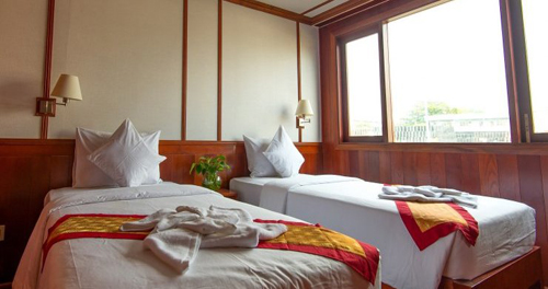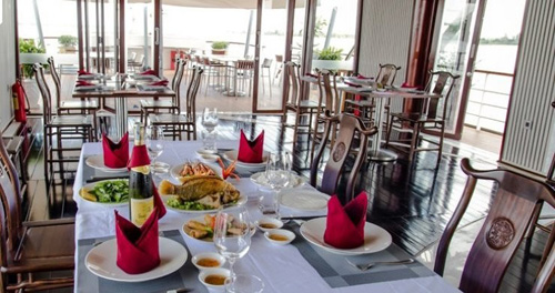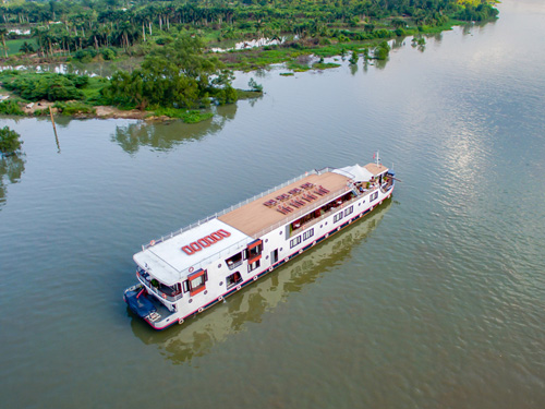 L’intérieur a été conçu dans un style colonial avec des matériaux locaux et des décorations vintage artisanales.Le bateau de croisière est conçu pour flâner dans les rivières étroites et sinueuses et les canaux du réseau hydrographique auxquels ne peuvent accéder les plus grands bateaux de croisière. De cette façon, nous pouvons vous montrer les joyaux cachés du nord du delta du Mékong.