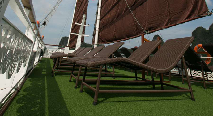 Il n’ya probablement pas de meilleur endroit que la baie d’Halong pour se détendre et se ressourcer. Les installations et services d’Oriental Sails vous apporteront une détente maximale. La terrasse offre beaucoup d’espace et d’atmosphère pour prendre un bain de soleil, prendre de superbes photos de la baie d’Halong, siroter un cocktail rafraîchissant tout en admirant les formations rocheuses se reflétant dans l’eau cristalline de la baie, ou tout simplement se prélasser au coucher du soleil. . L’écran large vous sert d’excellents clips de la baie et des films de son temps. Un large éventail d’événements réguliers et de fêtes soulève une partie de votre expérience de croisière inoubliable avec Oriental Sails.