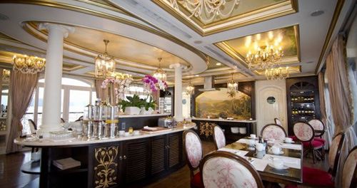 Mekong Princess est un navire fluvial de luxe récemment construit sur la route reliant le Vietnam au Cambodge. Le navire est élégamment conçu et décoré de manière exquise, rappelant l’ère coloniale française. De la nourriture à la décoration, tout est préparé en tenant compte de chaque détail. Le navire est grand mais il n’ya que 12 cabines spacieuses, chacune avec une baie vitrée et dotée d’équipements modernes qui promettent une expérience ultra confortable. À bord, vous pourrez également profiter du salon Ramvong, du spa Princess, de la bibliothèque, du centre de remise en forme et de la boutique.
