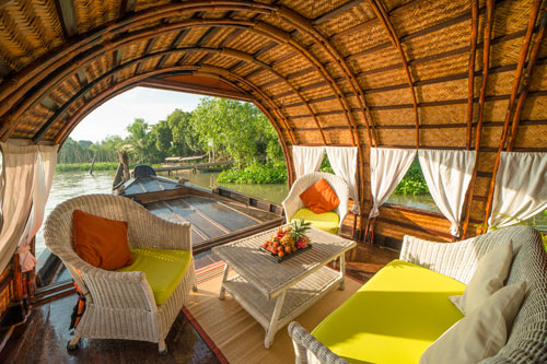 Notre croisière commencera vers 10h à l’embarcadère privé de Phu An, petit bourg typique du delta situé à près de deux heures de route au sud de Saigon. Vous serez accueilli par l’équipage à bord. Dès que votre installation finira, le sampan lèvera l’ancre pour une croisière intéressante de 2 jours 1 nuit à bord.