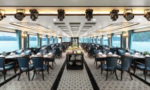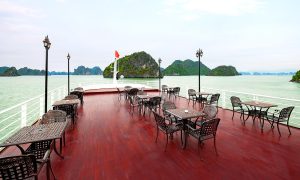V-Dream Cruises, inaugurée en juillet 2023, est une nouvelle référence en matière de croisières diurnes cinq étoiles dans la magnifique baie d’Halong. Arborant des dimensions impressionnantes de 31 mètres de long et 9,5 mètres de large, cette croisière peut accueillir jusqu’à 99 passagers. Érigée sur trois niveaux élégants, l’embarcation V-Dream s’engage à offrir une expérience sans pareille aux voyageurs.